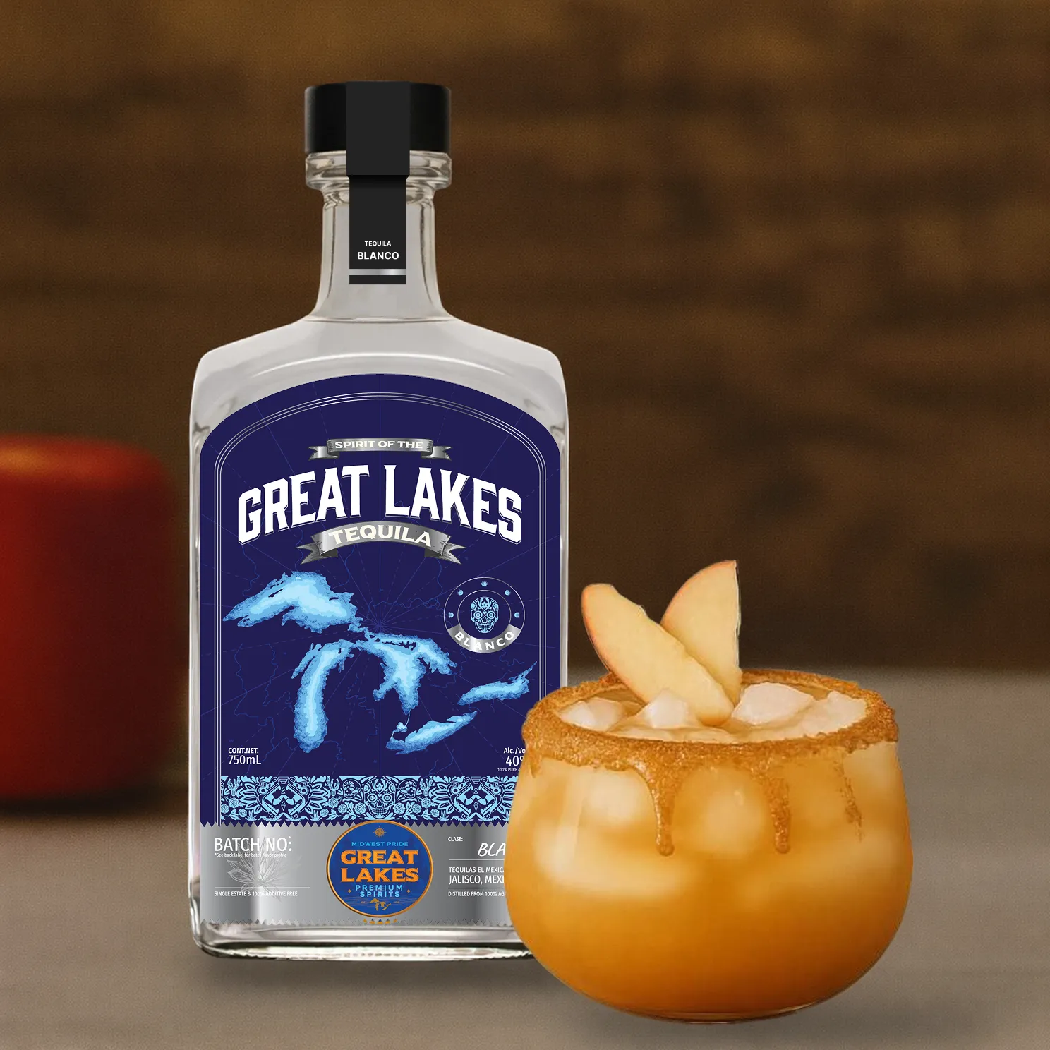 Rim the glass with a mix of sugar and cinnamon. In a shaker, combine tequila, triple sec, lime juice, apple juice, caramel sauce, and ice. Shake well until chilled. Strain into the prepared glass over ice and garnish with an apple slice or caramel drizzle.